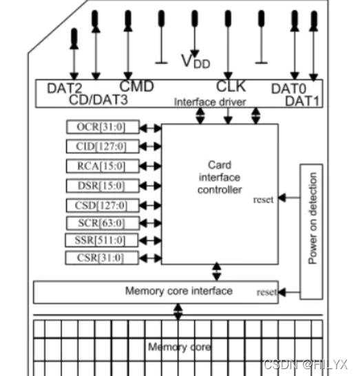 下图是SD卡的体系架构,可以看到内部包含了一系列的寄存器:
