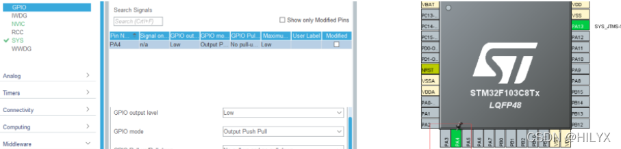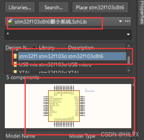 ?打开的元件库里找到 stm32f103c8t6 芯片,并双击打开,然后点击左将元件放在中间