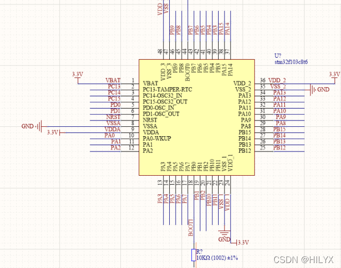 使用 Altium Designer 绘制一个 stm32 最小系统的电路原理图。