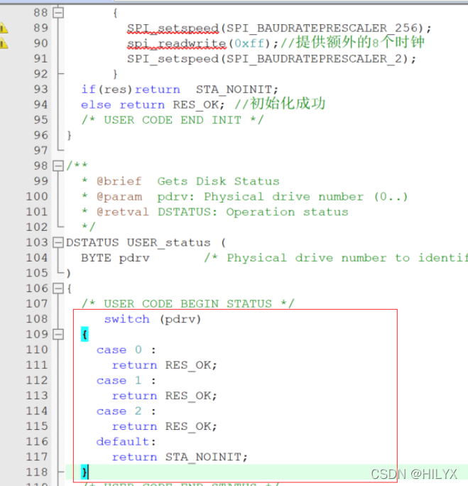 2.将下面代码放在指定位置,修改函数内容:USER_initialize、USER_status、USER_read、USER_write、USER_ioctl ?