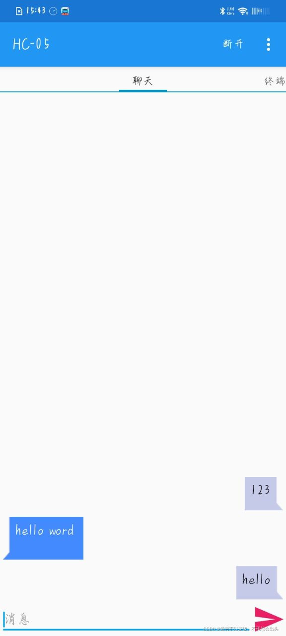 以上配置可以在电脑端通过串口调试助手配置好,然后单片机接上蓝牙模块即可,模块上电后主从机会自动建立连接,连接成功后,主从机就可以通过串口通信了(透传模式 :发什么收什么)。