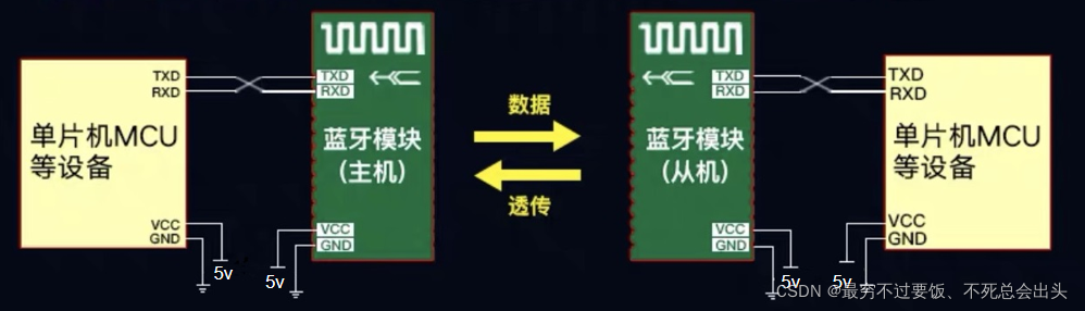 这时需要两个蓝牙模块,将其中一个设置成主机,另一个设置成从机。