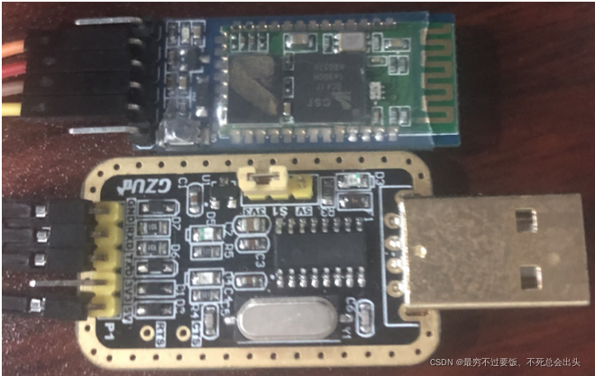 i 命令响应模式:在蓝牙模块中有一个小按键,将HC-05与CH340连接后长按着按钮给模块上电。