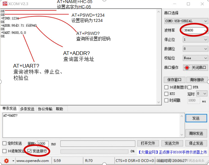? ? ?AT+NAME=HC-05? ?修改蓝牙模块名称为HC-05