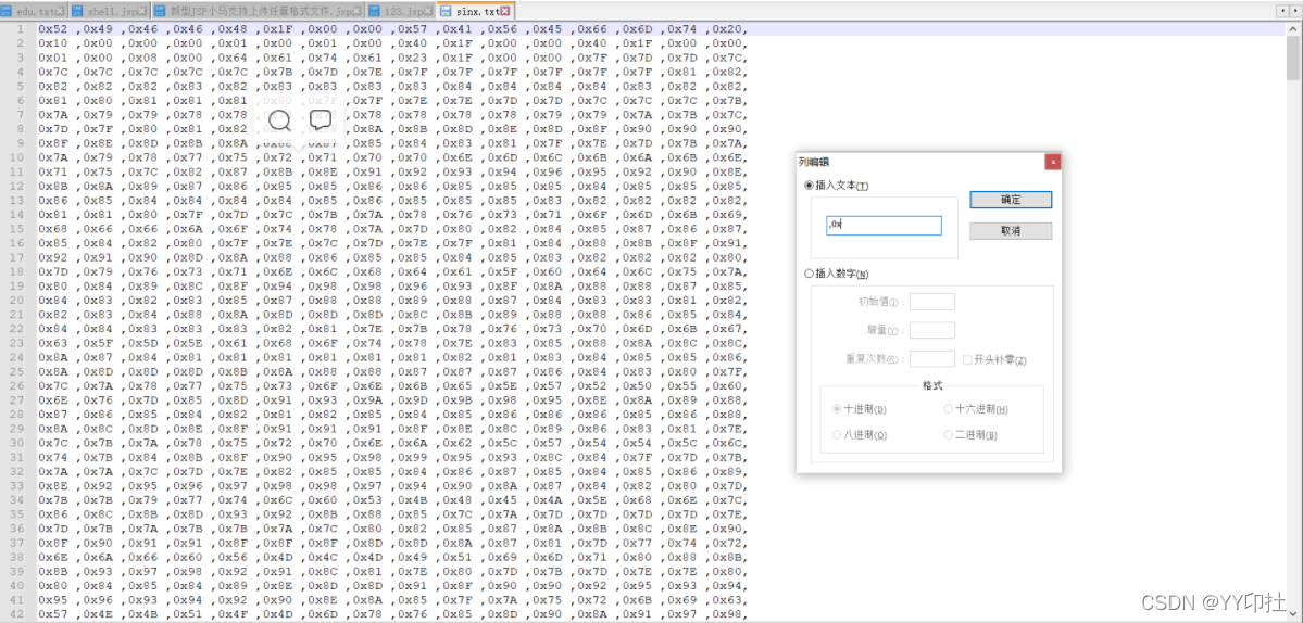 ?点击第一行的每个数字后面,列编辑插入,0x。