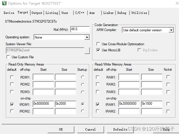 IAP在线升级程序包括bootloader+app1+app2(需要更新的程序),此次记录只包括bootloader转到app1。