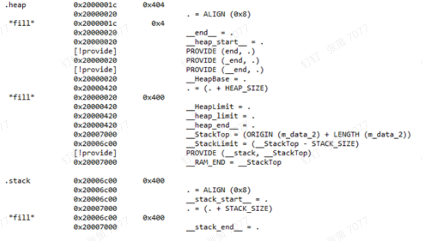 堆空间设置为0x20000020 – 0x2000041f,大小为0x400。 栈空间设置为0x20006c00 – 0x20006fff,大小为0x400。