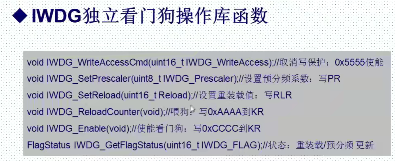 IWDG_WriteAccessCmd(IWDG_WriteAccess_Enable);//取消写保护