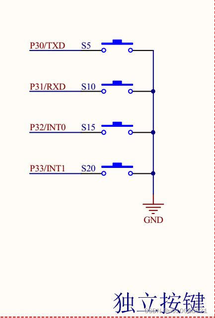 当按键按下去的时候,电路导通,此时电路连通,为低电平0;