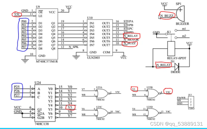 ? N_RELAY接低(OUT5-->(非门)IN5-->Y5C)--->线圈通电,继电器吸合