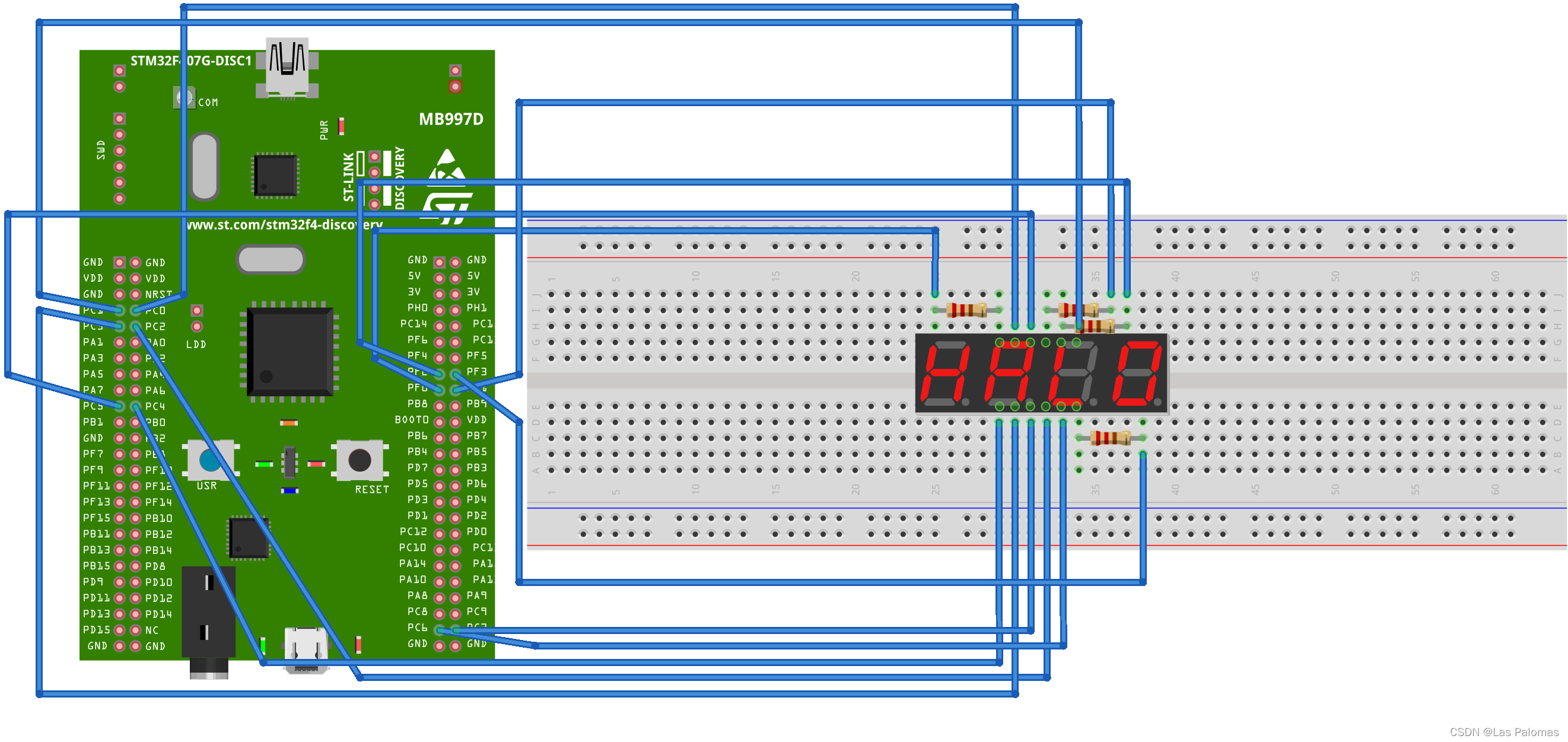 STM32F407ZG开发板一块 面包板及配套连接线(公对母) 四位共阳极数码管3641BS(最原始版本,不包含任何集成芯片) 4个220Ω限流电阻
