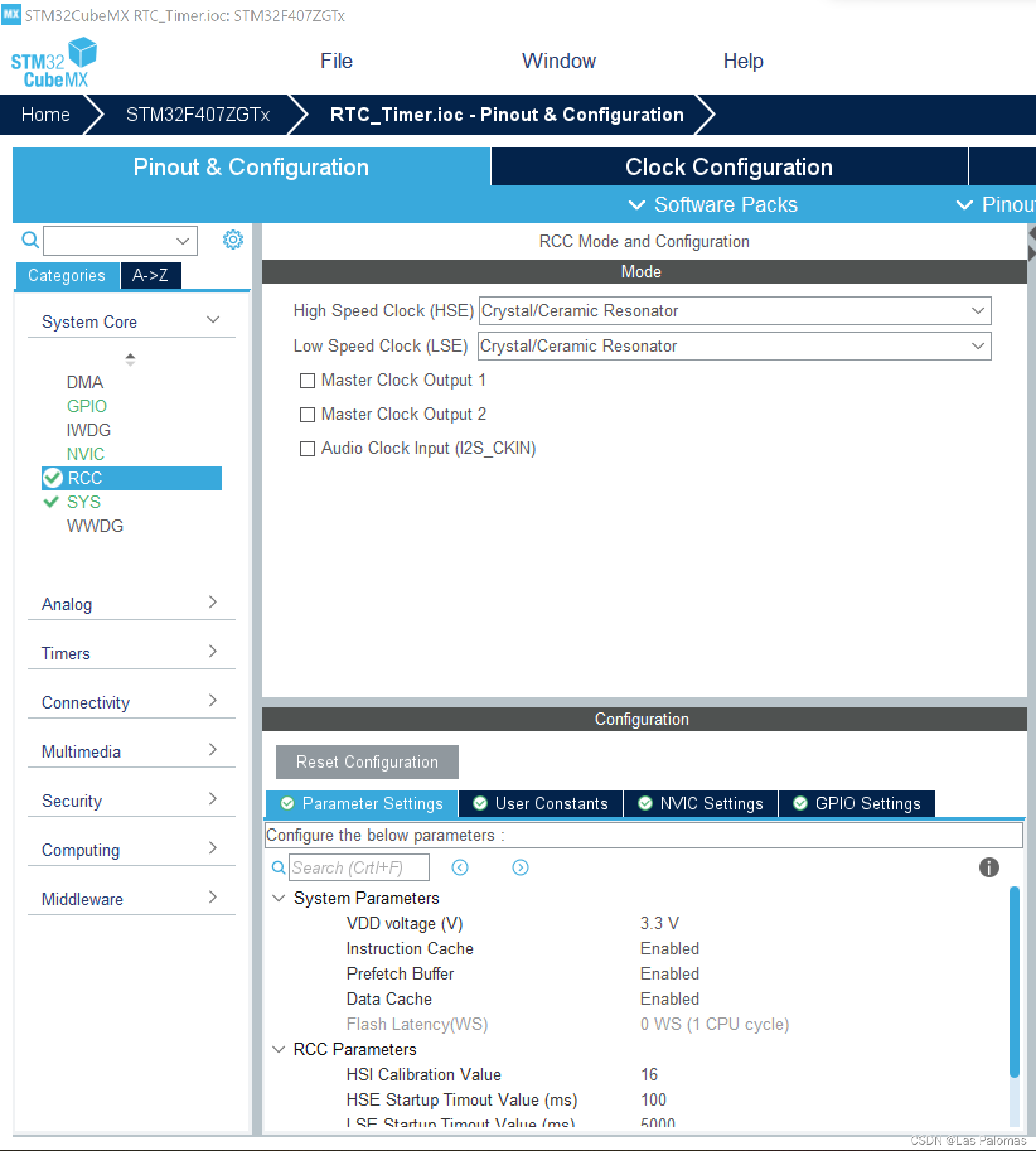 ?RCC系统时钟源的HSE, LSE都调为晶振源