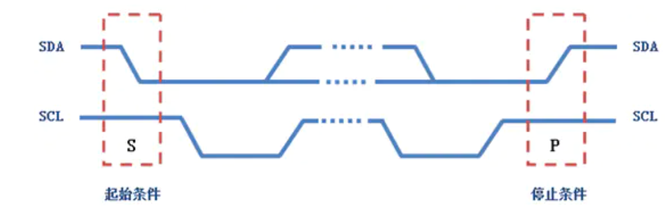 SCL为高电平时,SDA由低变高。 ** 起始和停止都是主机发出,起始信号产生后总线处于被占用的状态,停止信号发出后总线处于空闲状态。**