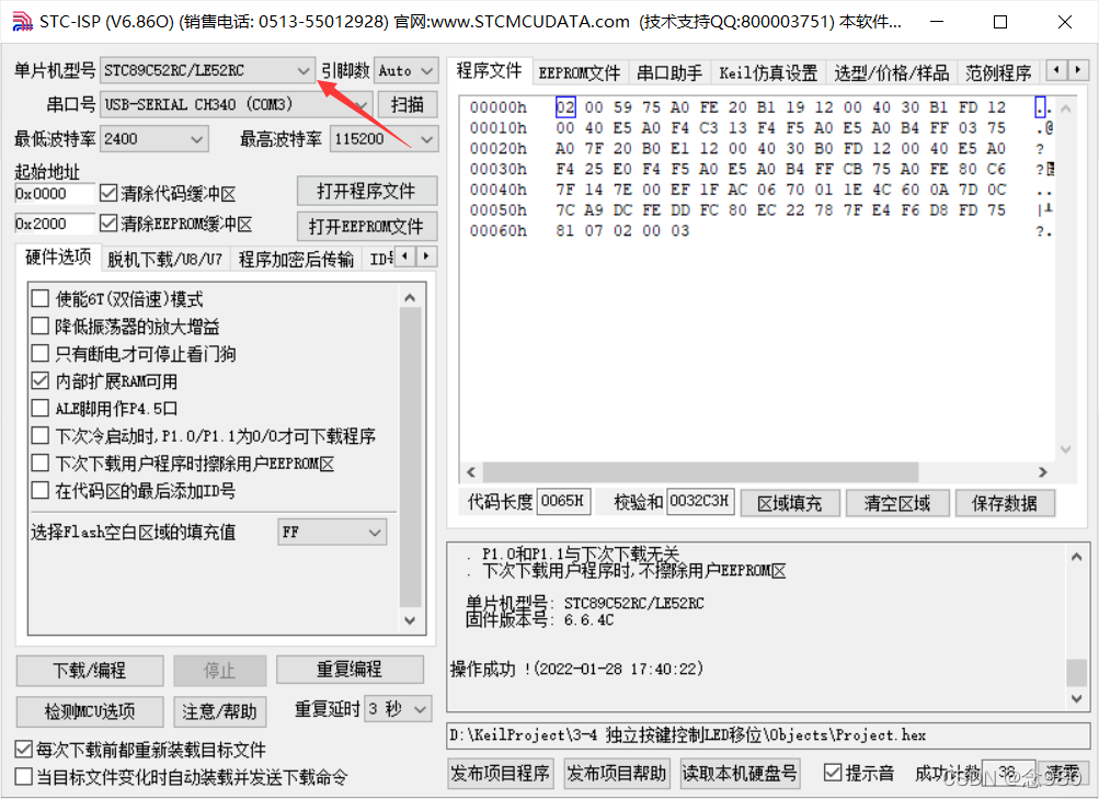 我们一般使用keil5来生成程序文件,用stc-isp将其下载到开发板上。由于下载资源很丰富,所以这里不赘述下载过程(keil5有两个版本,一个适用于51,另一个适用于开发stm32,虽然长得一样,但是适用范围不同,需要仔细甄别)。