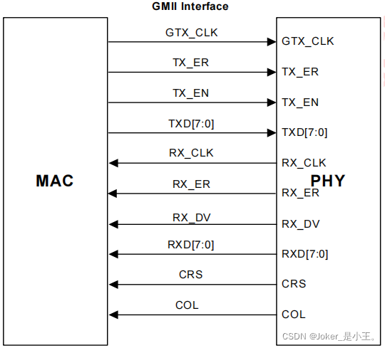 ?3.GMII的数据接口是8位宽的,GTX_CLK的方向是从MAC到PHY,由MAC产生,绝大多数时候,GMII是可以兼容MII口的,此时使用的时钟是TX_CLK,需注意方向,数据线使用8根中的4根