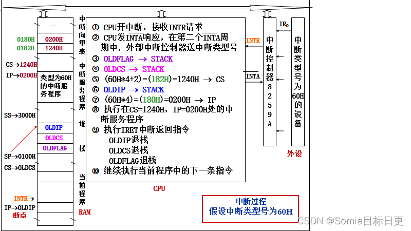 必须立即响应,但不发中断响应信号。 系统安排中断号为2。 - 标志位的处理与断点保存