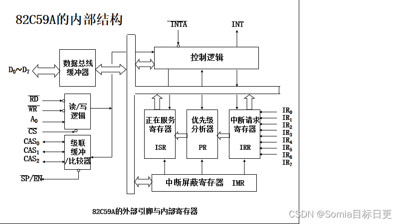 1.外部特性 面向CPU的信号 面向外设的8根中断请求线 面向同类芯片的中断请求级联线