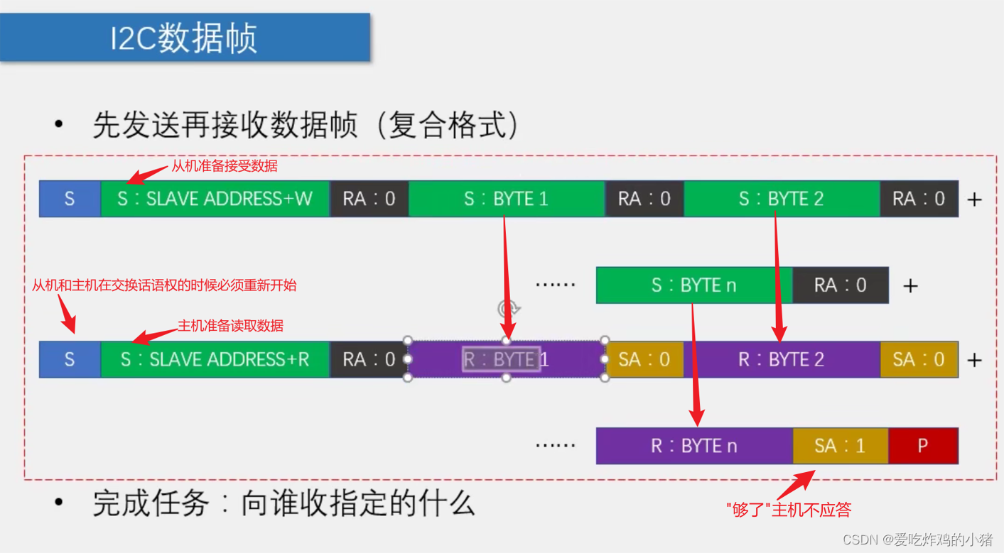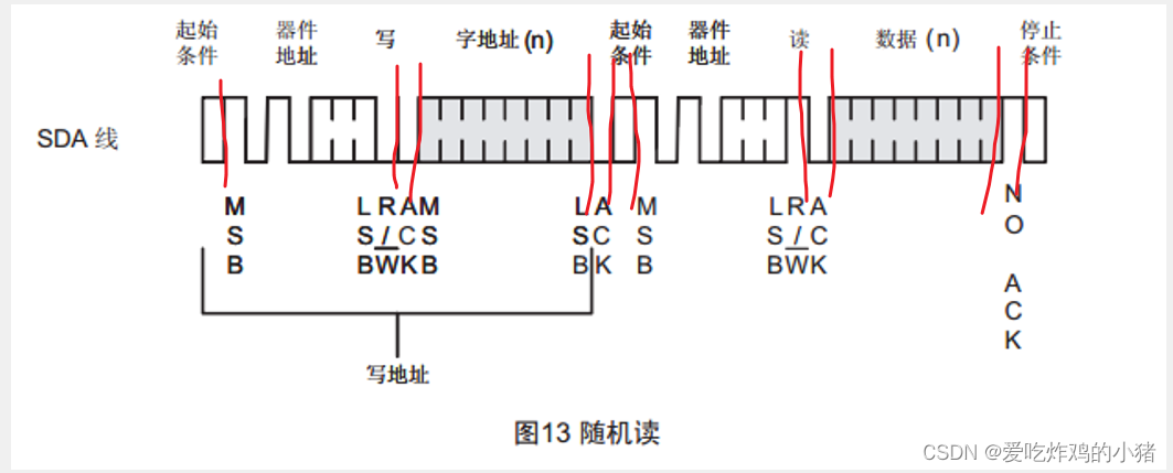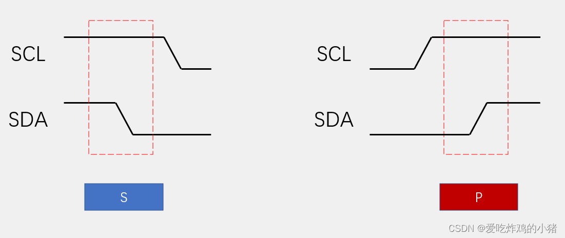 起始条件:SCL高电平期间,SDA从高电平切换到低电平