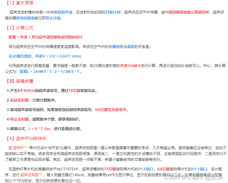 定义变量接收数据,定时器赋初值 发送脉冲 等待接收脉冲信号 接收完后TR会变成第电平,或者等待计数的溢出, 然后根据 溢出位进行判断 ,为0表示没有溢出,然后用变量接收定时器计数的值,否则就是溢出了将溢出得标志位清0即可