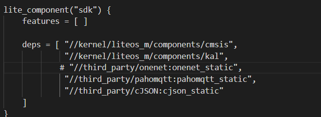 打开vendor\hisi\hi3861\hi3861\BUILD.gn 文件, 在lite_component(“sdk”) 中增加 “//third_party/pahomqtt:pahomqtt_static”