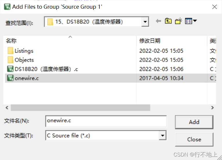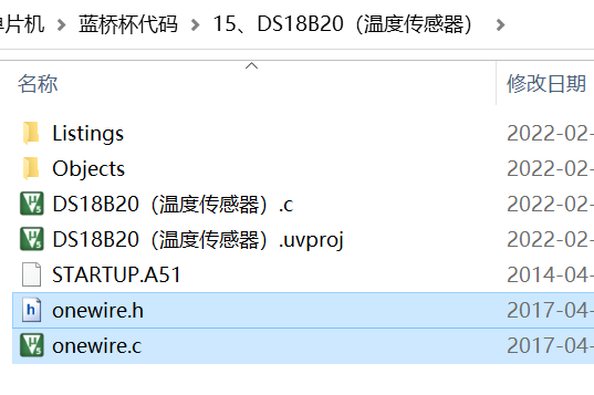 ①将onewire.h和onewire.c(注意工程添加.c文件)拷贝到自己所建文件夹