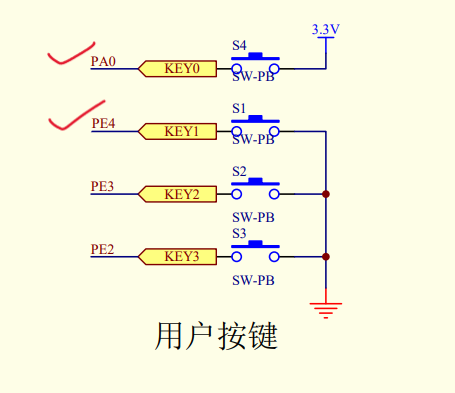 接下来我们来查看我使用的这款单片机的按键部分的电路图