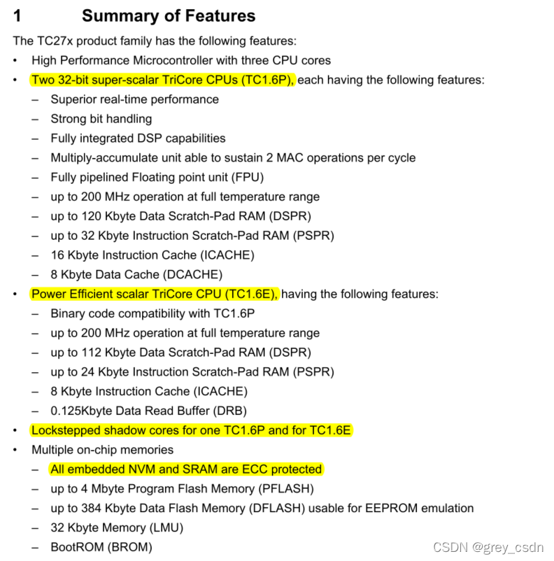 - 其他,各种通信外设:SPI、CAN、I2C、MSC、SENT、FlexRay、以太网、各种定时器以及比较器,外设的接口。
