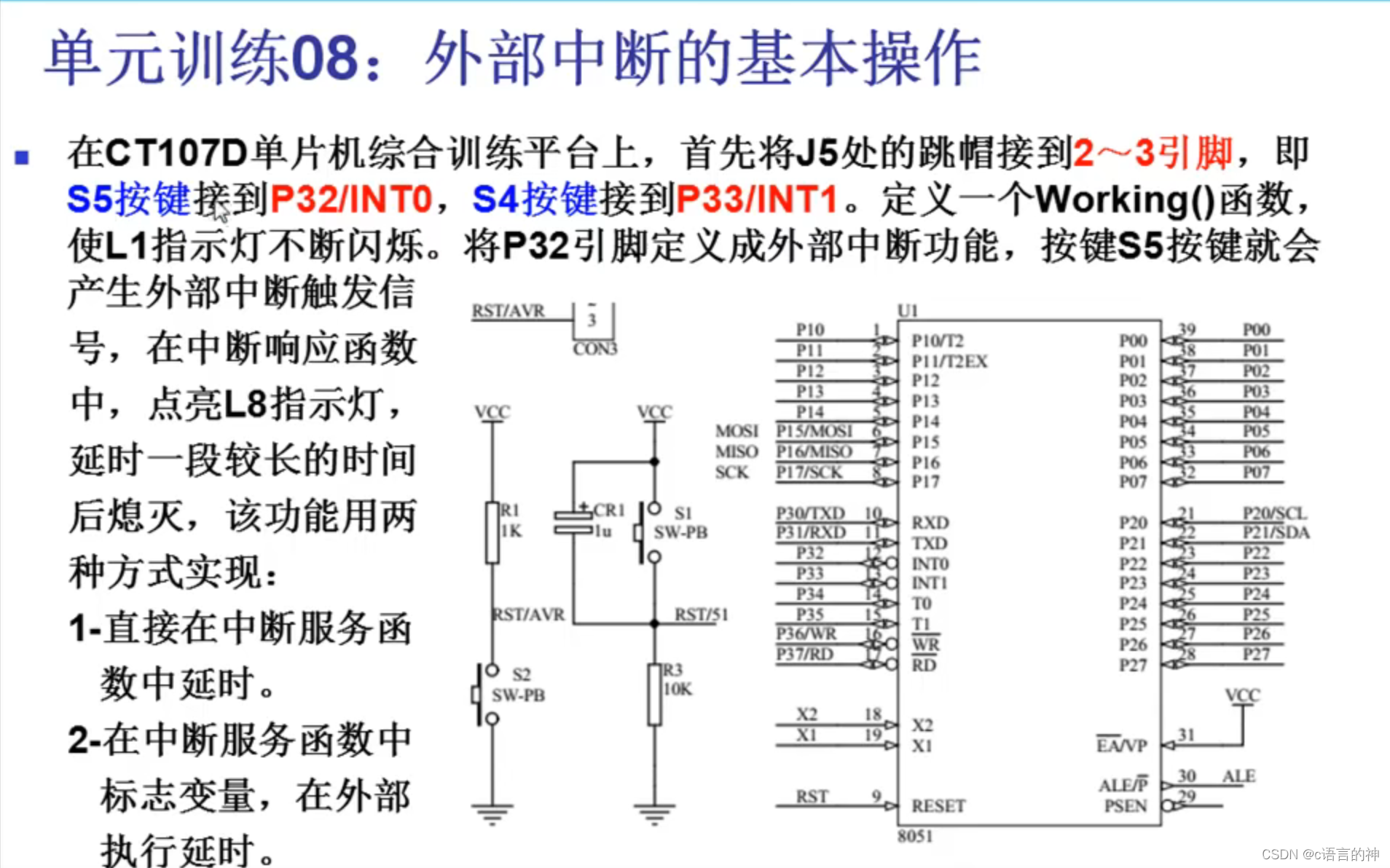 51单片机中有5个中断源这里使用的是外部中断0:INT0。