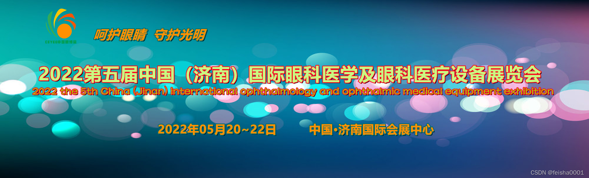 全称:2022第五届中国(济南)国际眼科医学及眼科医疗设备展览会(CEYEE中国眼博会) The 2022 fifth China (Jinan) International ophthalmology and ophthalmic medical equipment exhibition 时间:2022·05·20~22 展馆:中国·济南国际会展中心 主题:呵护眼睛,守护光明 同期:第五届中国(济南)国际青少年眼健康产业展览会