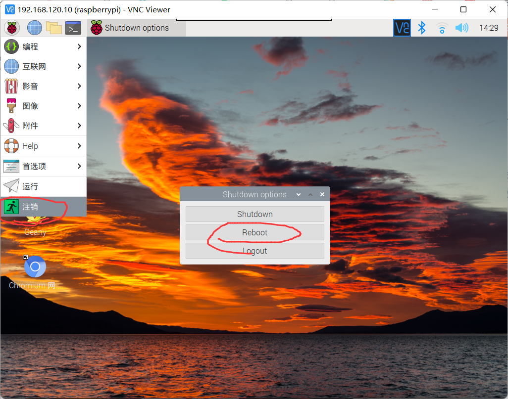 打开Raspberry Pi Configuration  按下图打开I2C.  然后选择注销;Reboot等待重启。