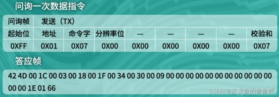 pm25ask[9] = {0xFF, 0x01, 0x07, 0x00, 0x00, 0x00, 0x00, 0x00, 0x07}是向传感器发送问询的数据指令,传感器应答帧长度40位;