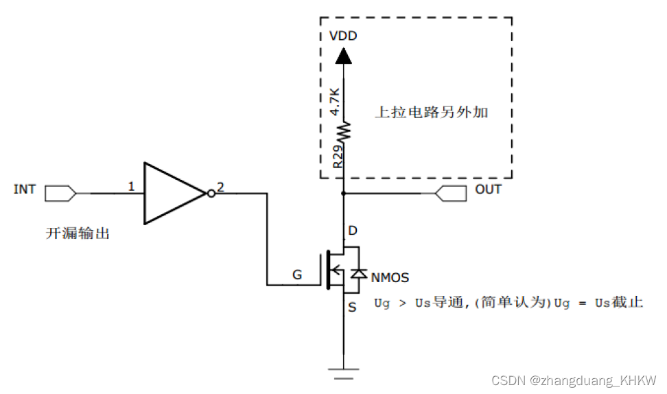 开漏模式输出时,上方的P-MOS管完全不工作。如果我们控制输出为0,低电平,则P-MOS管关闭,N-MOS管导通,使输出接地,若控制输出为1(它无法直接输出高电平)时,则P-MOS管和N-MOS管都关闭,所以引脚既不输出高电平,也不输出低电平,为高阻态。正常使用时必须接上拉电阻。 它具有“线与”的特性,也就是说,若有很多个开漏模式引脚连接到一起时,只有当所有引脚都输出高阻态,才由上拉电阻提供高电平,此高电平的电压为外部上拉电阻所接所接的电压。若其中一个引脚为低电平,那线路就相当于短路接地,使得整条线路都为低电平,0伏。 在STM32的应用中,推挽输出模式一般应用在输出电平为0和3.3伏而且需要高速切换开关状态的场合。除了必须使用开漏模式的场合,我们都习惯用推挽输出模式。 开漏模式一般应用在I2C、SMBUS通讯等需要“线与”功能的总线电路中,除此之外,还用在电平不匹配的场合,如需要输出5伏的高电平,就可以在外部接一个上拉电阻,上拉电源为5伏,并且把GPIO设置为开漏模式,当输出高阻态时,由上拉电阻和电源向外输出5伏的电平。 推挽输出与开漏输出电路结构中可以是P-MOS管与N-MOS管,也可以三极管。