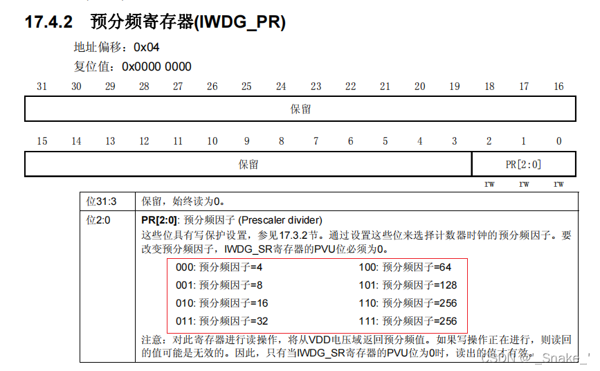 1.使能对寄存器IWDG_PR和IWDG_RLR的写操作