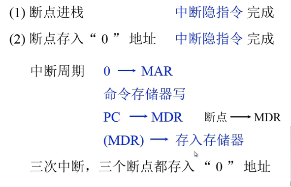 以下三个操作都是在中断周期内由一条中断隐指令完成的。