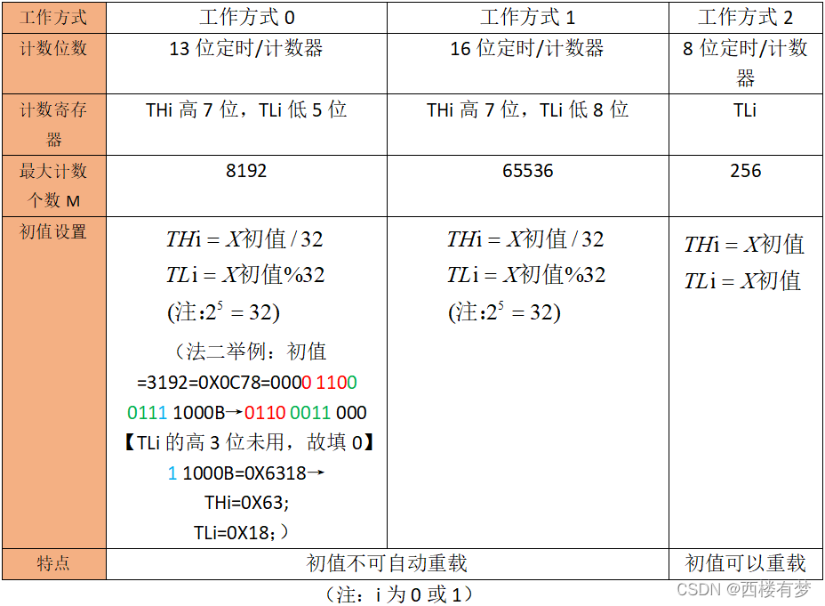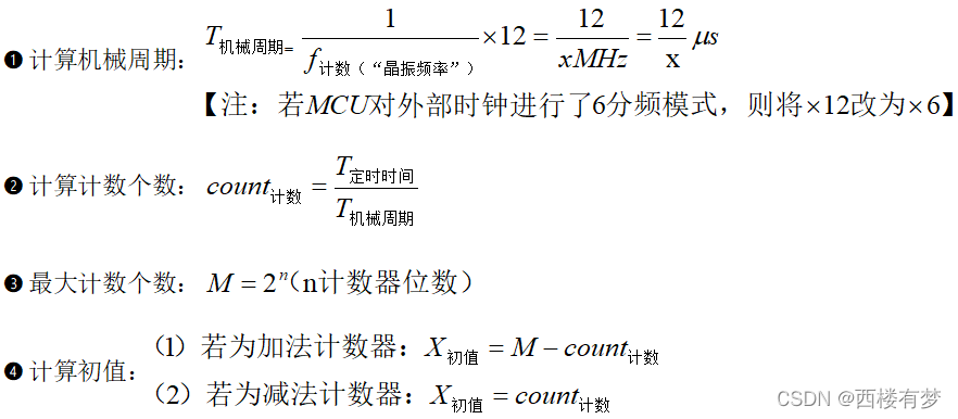 7.定时/计数器初值计算及设置:? ????????①初值计算: ????????②初值设置: