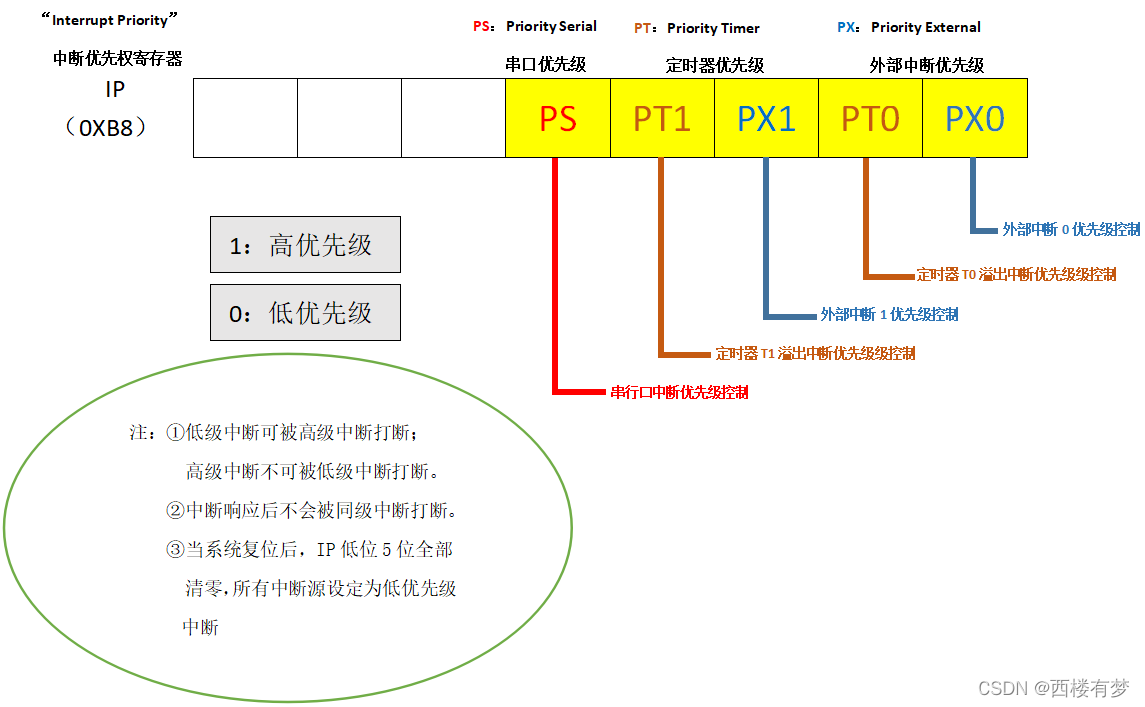 4.中断有关寄存器: ①TCON: ②SCON: ③IE: ④IP: