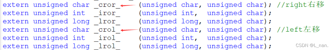 关于左移右移函数(在intrins.h文件里的第21、24行)