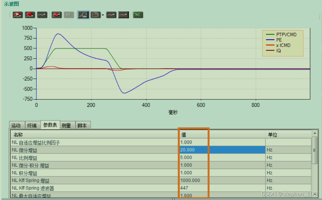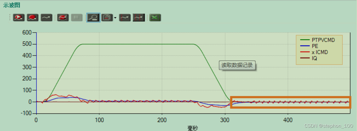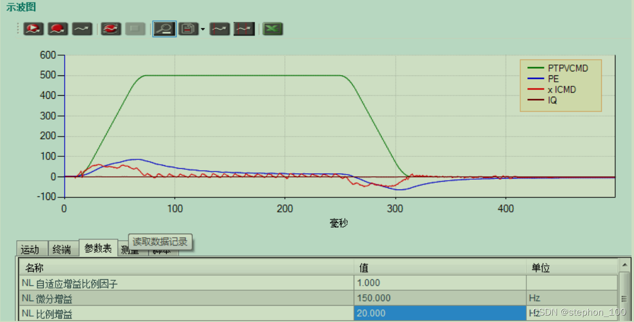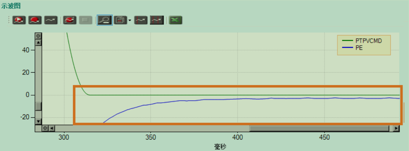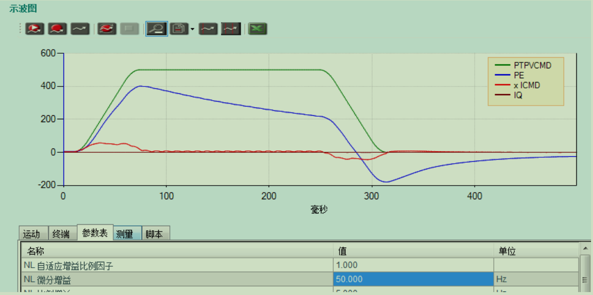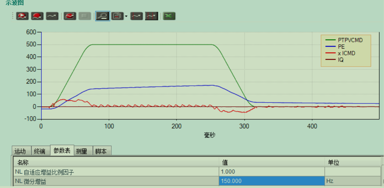 ICMD为电流,PTPVCMD为速度,PE为位置误差。
