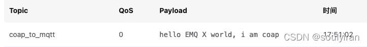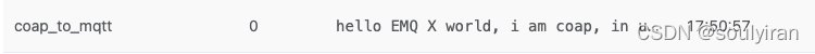 插件运行成功后,可以按照EMQ手册中给的例程,使用libcoap进行测试,可以看到,信息发送后,订阅相关主题已经能够成功接收到信息。注意,在这里需要将IP地址修改为自己服务器对应ip。