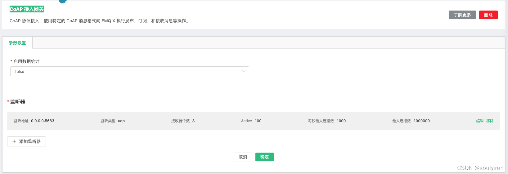 CoAP服务器可以通过EMQ中的CoAP 接入网关插件将其信息转换为mqtt信息,方便存储以及其他节点接收,插件使用方法在EMQ官方文档中有详细介绍以及例程。配置全部默认即可。