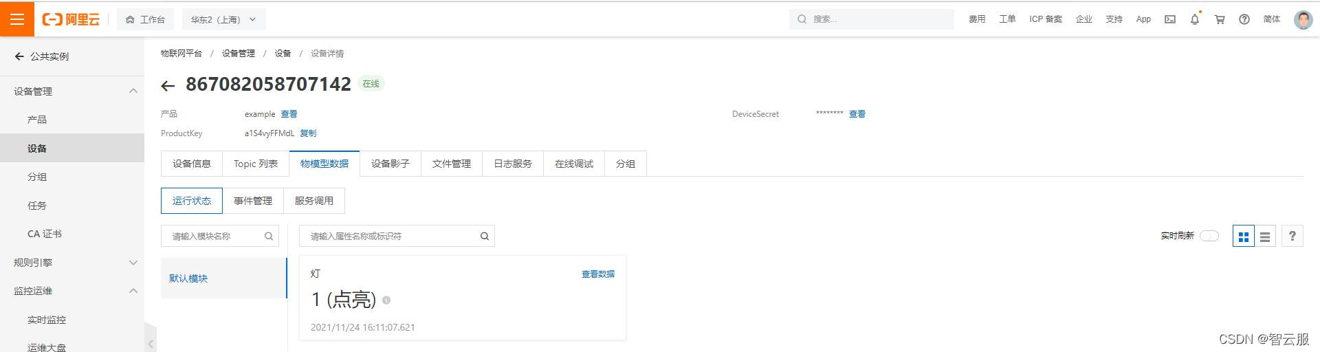 deviceSecret = "7567432854953fc9b71f4fbcf4b25650"