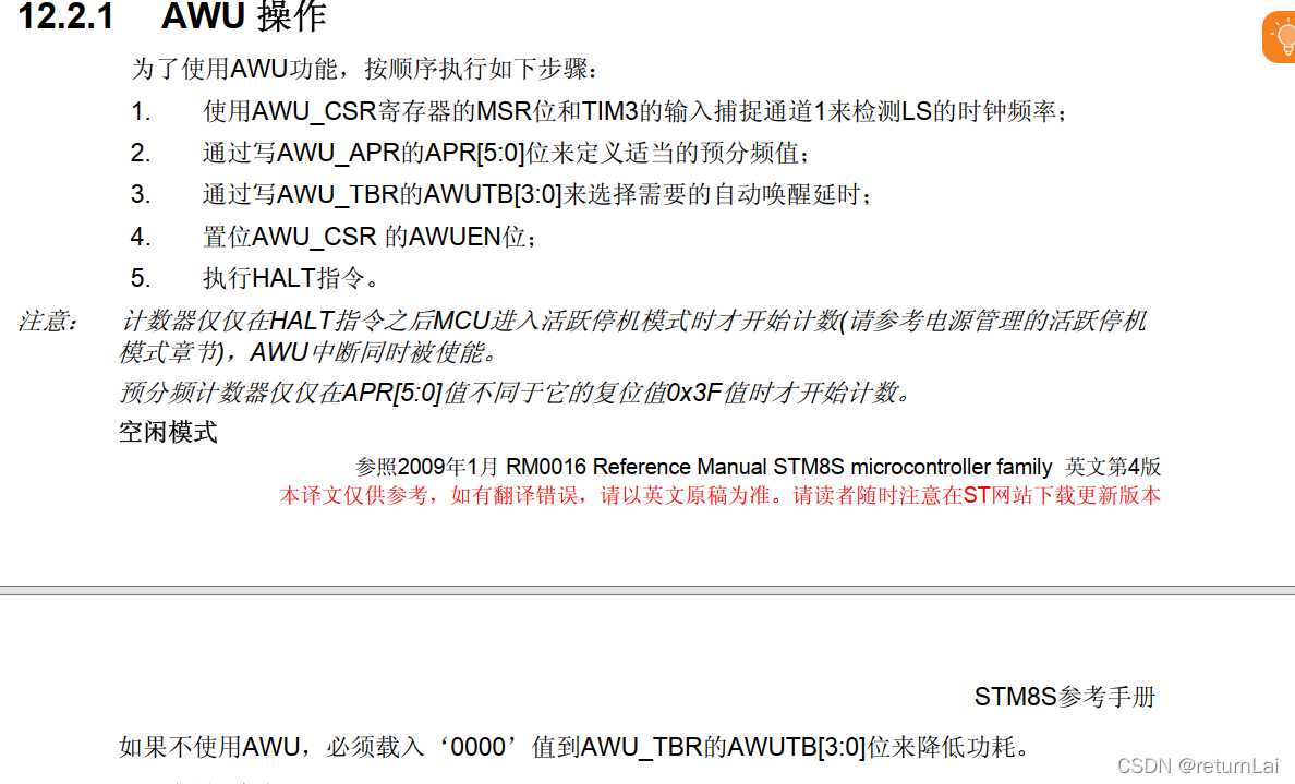 想使用AWU模式 首先得知道它是通过内部低速时钟LSI产生的(也可以是HSI)可以自己设置