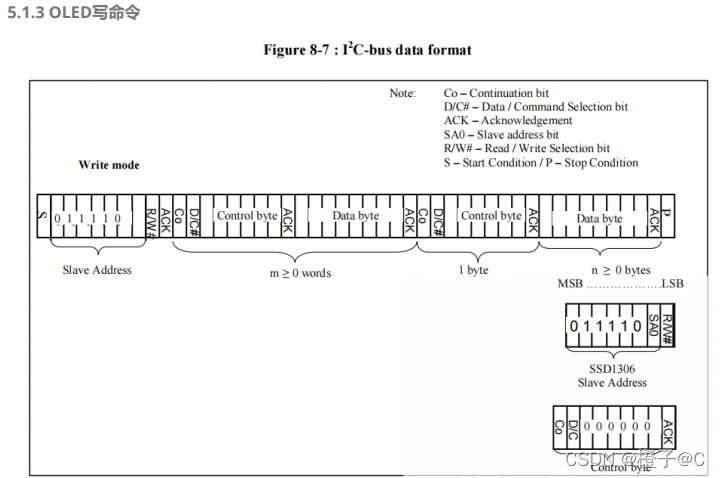 // 4. cotrol byte: (0)(0)000000 写入命令 (0)(1)000000写入数据