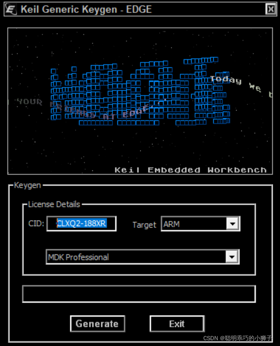 14.复制ID号  15.双击打开注册机软件注意:注意:请调小音量,这个打开后有声音,当时吓我一跳  16.粘贴ID号到CID栏里,在Target里选择ARM,之后,点击Generate按钮  17.得到注册号并复制 18.粘贴注册号,点击添加进行注册(出现如下图步骤3所示,即代表注册成功)  但此时会出现报错,是因为没有以管理员的身份运行  关掉软件,回到桌面,右键以管理员身份运行,然后再按之前的粘贴注册号,点击添加进行注册操作即可