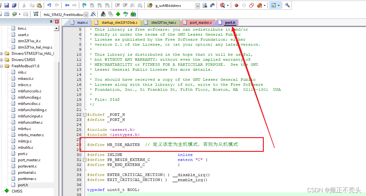 移植的时候与从机时候的移植没有区别,我设置了一个全局宏定义MB_USE_MASTER ,该宏定义在port.h 文件中,定义该宏表示使用主机模式,注释该宏为从机模式。