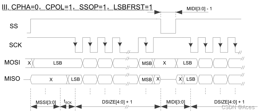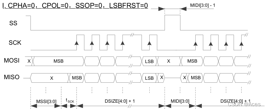 工作模式1:时钟默认低电平,在第1个时钟沿采集数据。