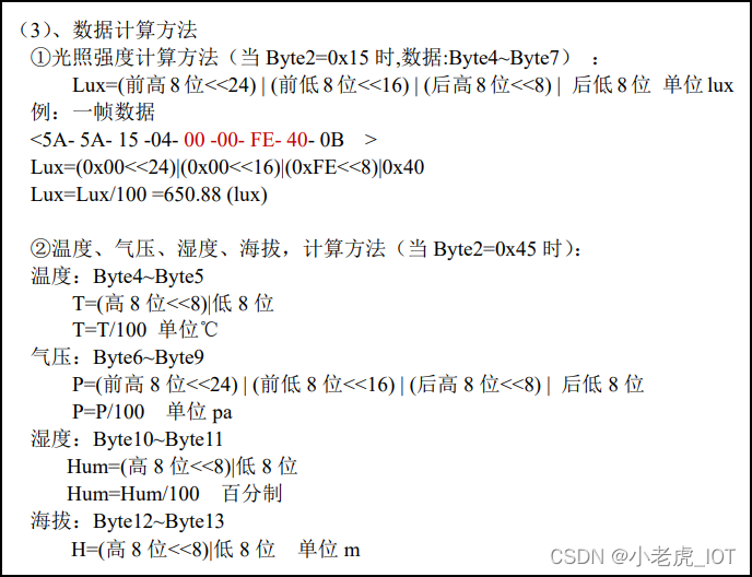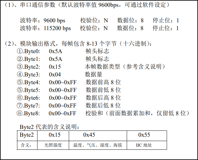 这个模块(GY39)的数据可以由串口输出,格式如下: