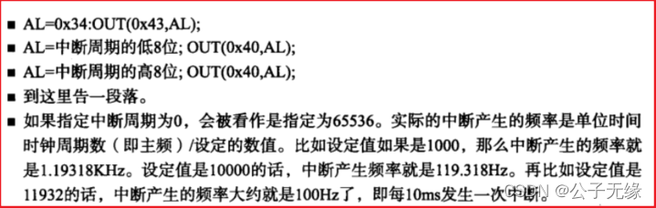 ????????就是说,如果想要IRQ0中断时间为10ms,就需要往寄存器中写值11932(0x2e9c):