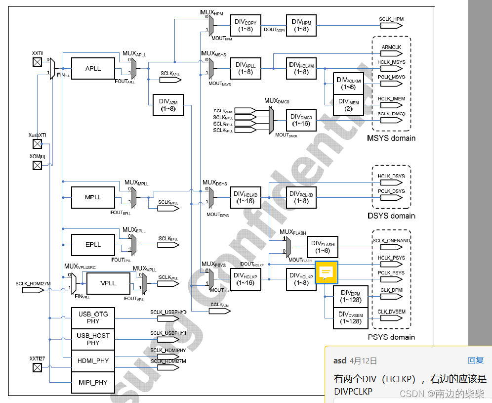 PSYS域: ?? ?HCLK_PSYS:? ? PSYS域的高频时钟 ?? ?PCLK_PSYS:? ? PSYS域的低频时钟 ?? ?SCLK_ONENAND