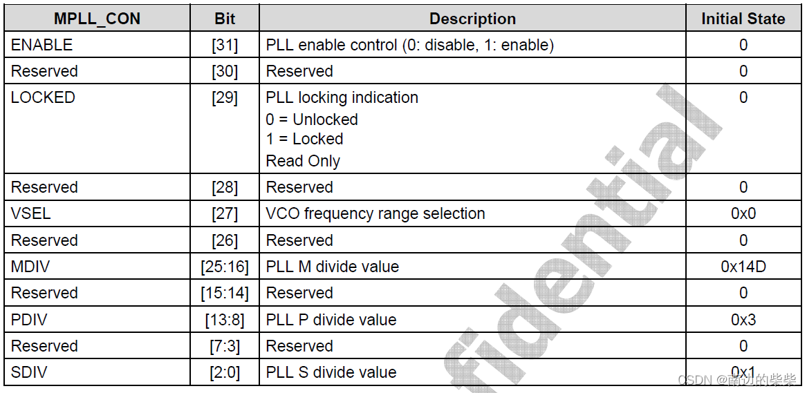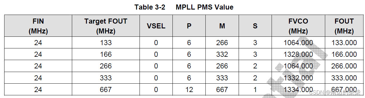 ?????????按照默认值,ARMCLK为1000MHz,MPLL为667MHz,查询表格,设置M P S的值,或通过计算公式进行计算。